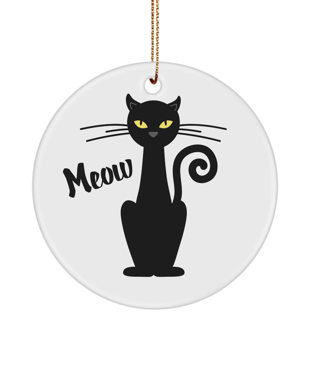 Black Cat Ornament – Meow Cat Lover Ornament – Black Cat Desk Accessory Gift For Women And Girls White