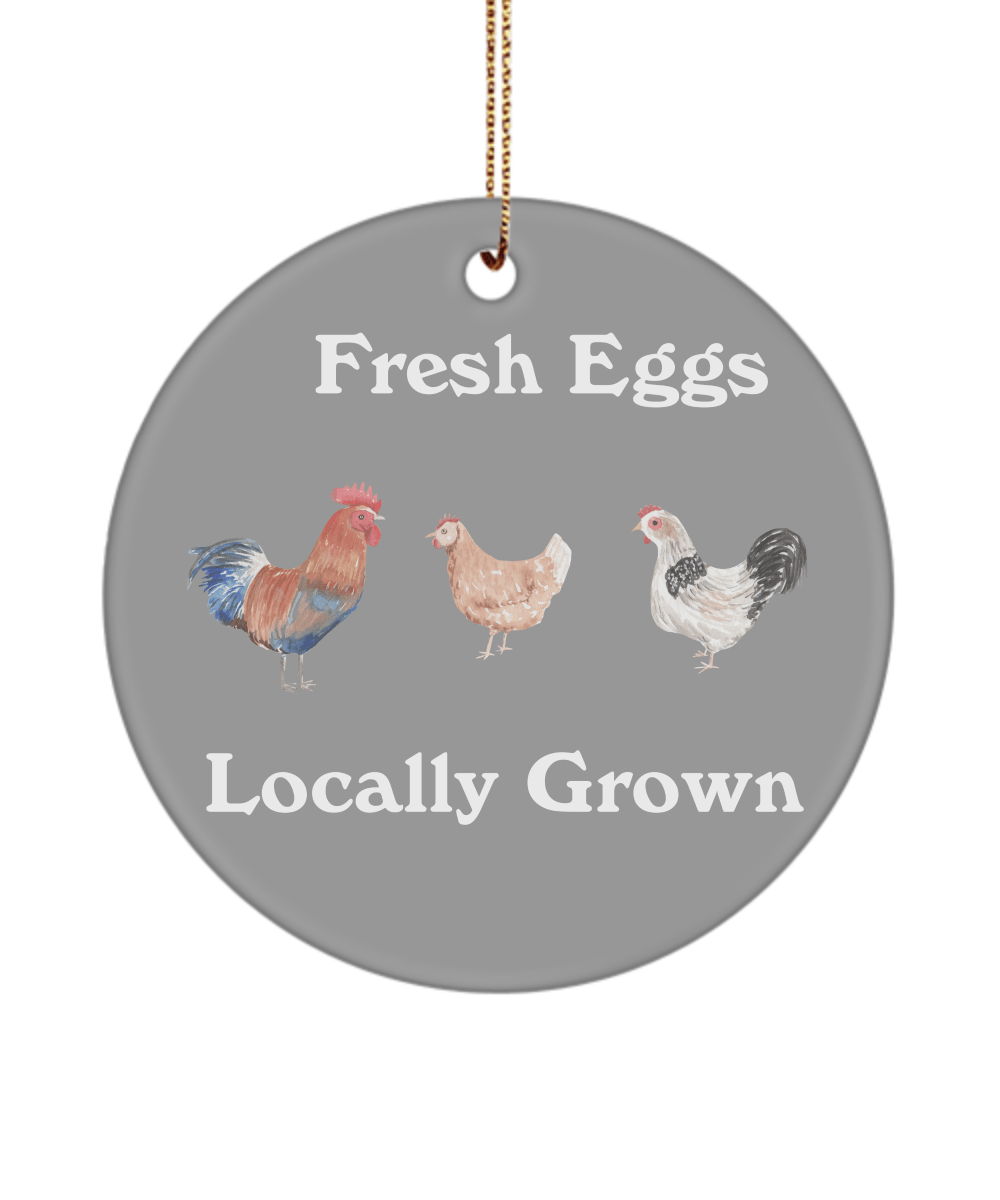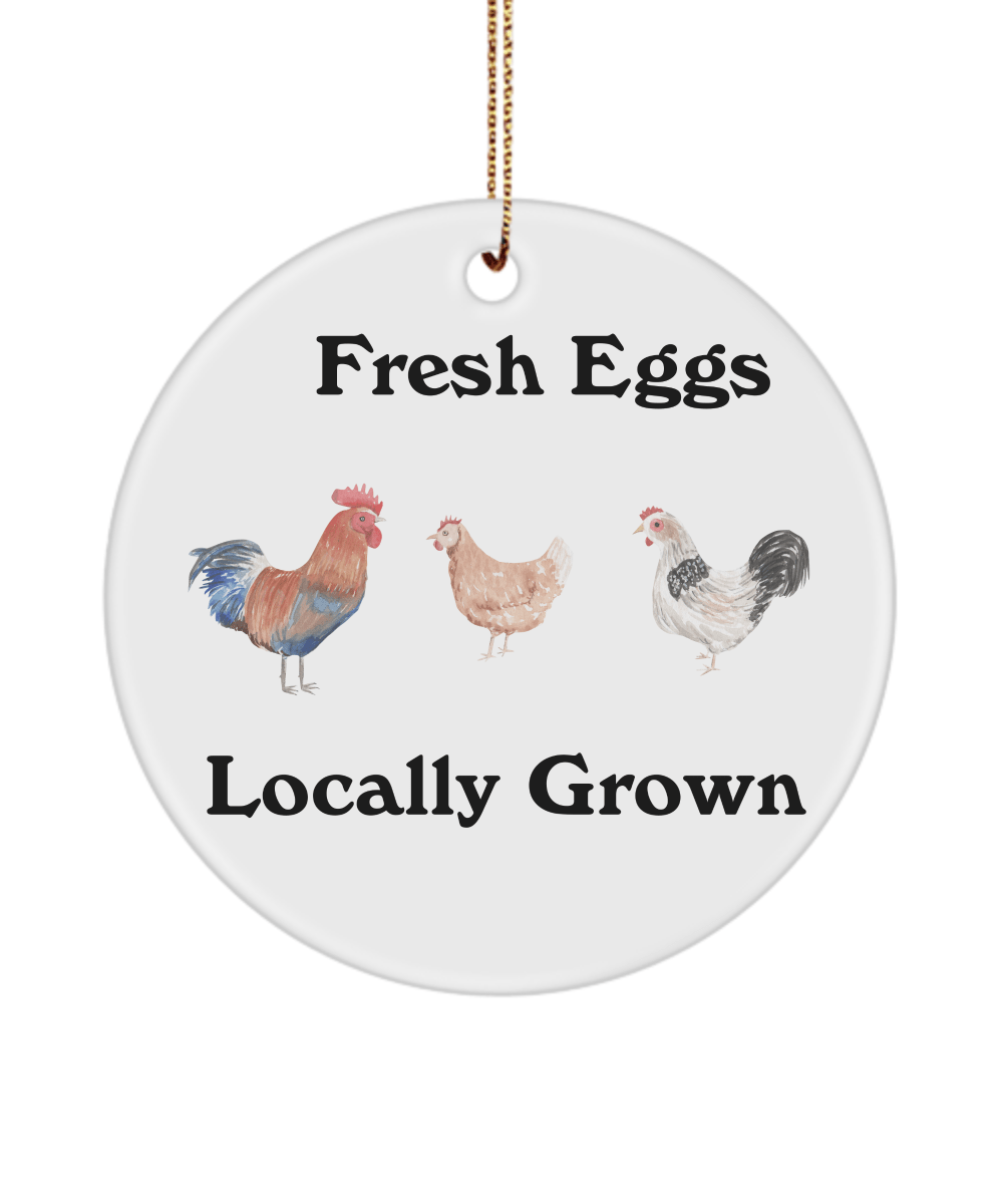 Farmhouse Ornament – Fresh Eggs Locally Grown – Rooster Chicken Farmhouse Animal Farm Country Desk Accessory Gift Ideas For Men Women White