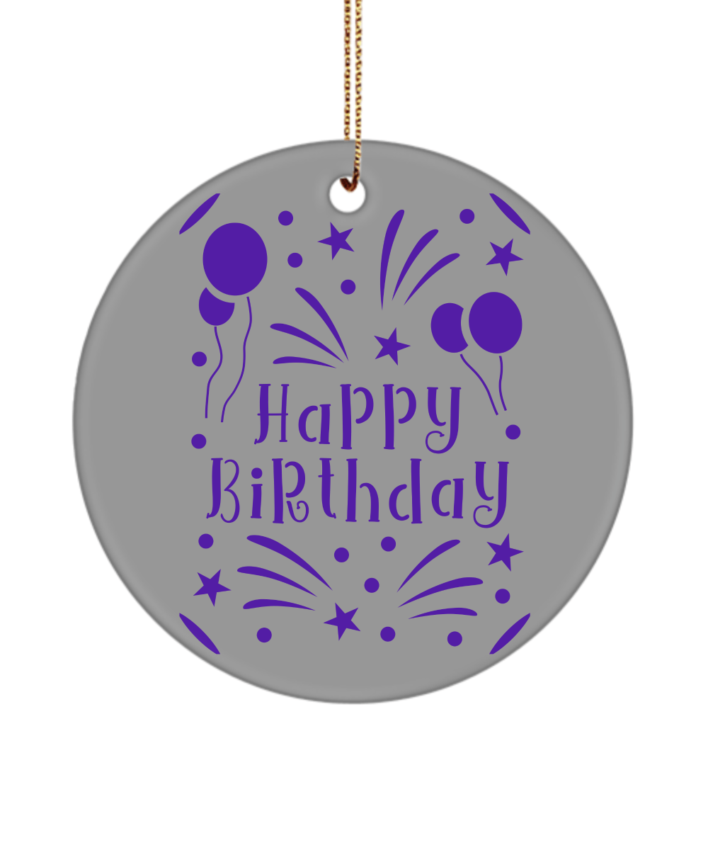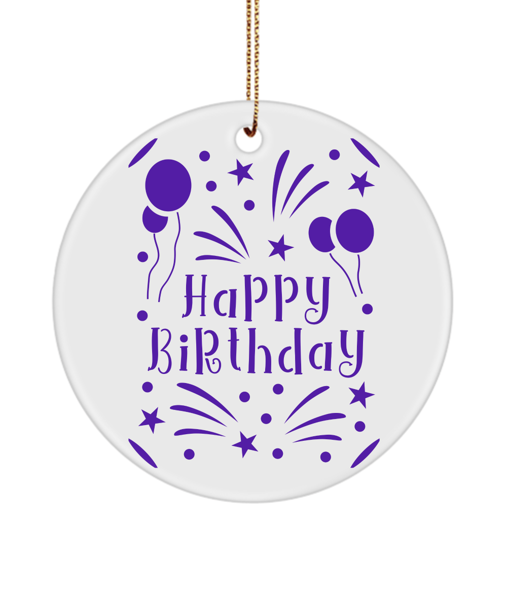 Happy Birthday Ornament – Happy Birthday Balloon Fireworks Purple – Birthday Gift Ideas For Men Women White