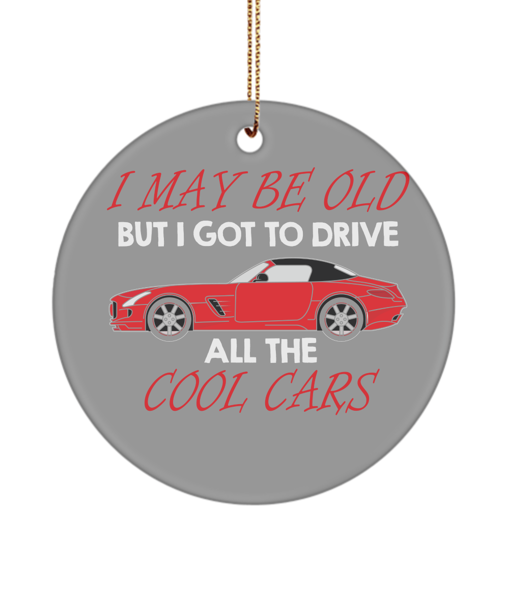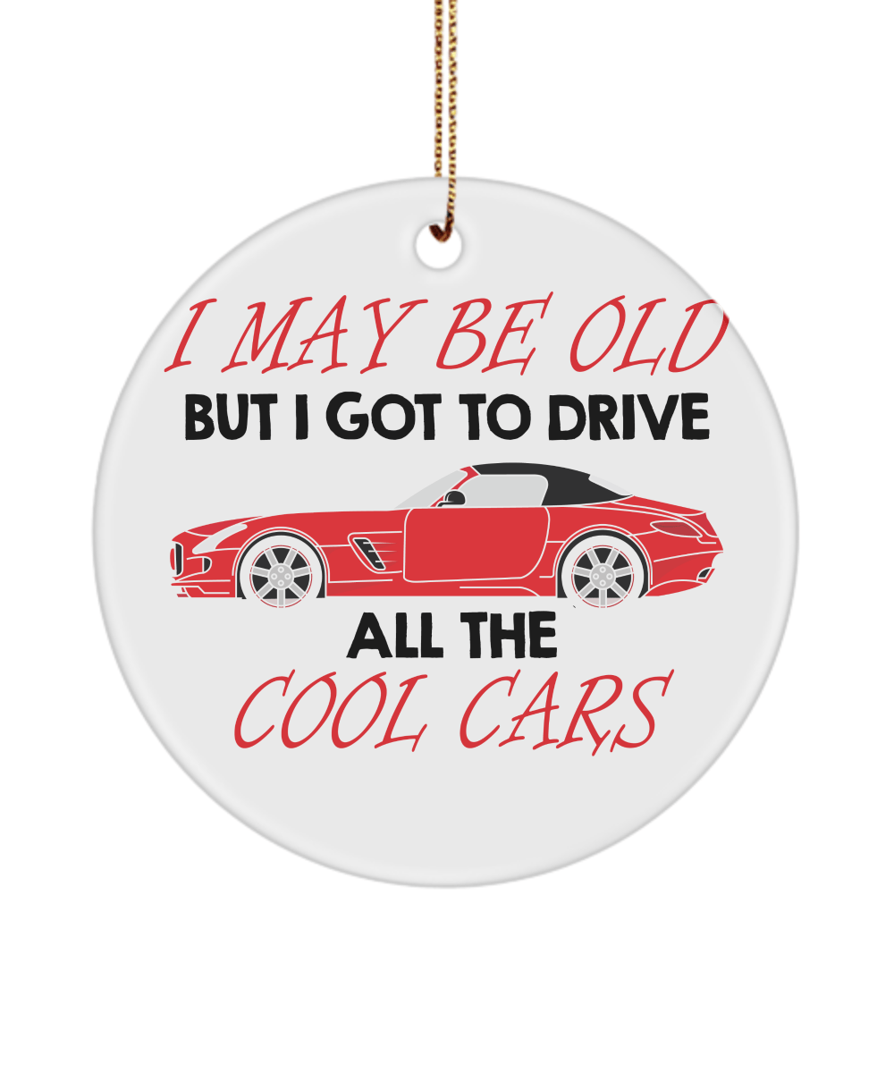 I Maybe Old But Drive Classic Cars Retirement Gift Ornament Retired Senior Dad Father Grandpa Granddad Birthday Gifts For The Car Enthusiast White