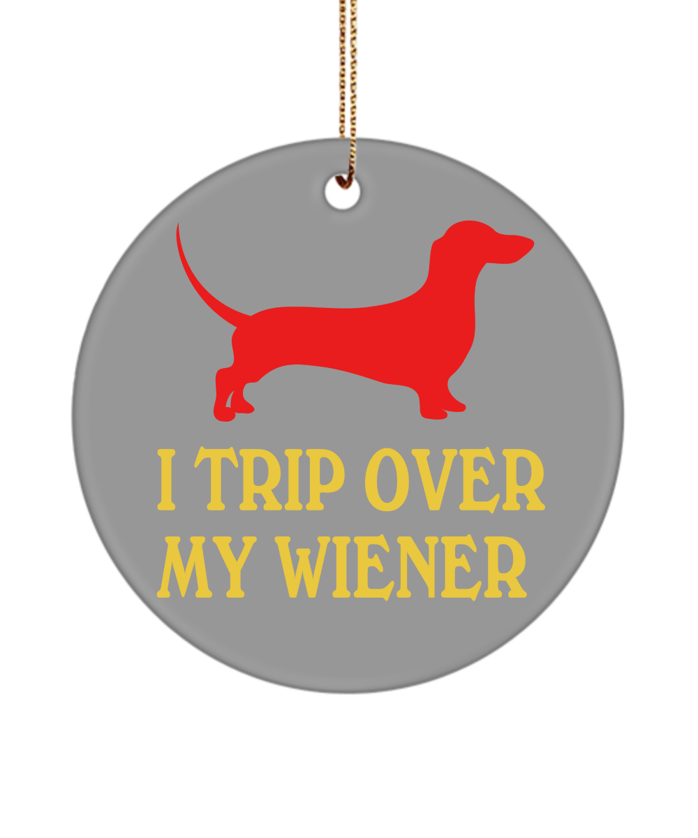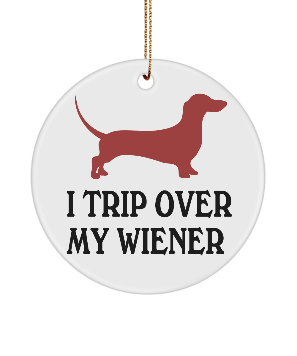 I Trip Over My Wiener Dachshund Ornament Funny Christmas Birthday Holiday Gag Gift Ideas White