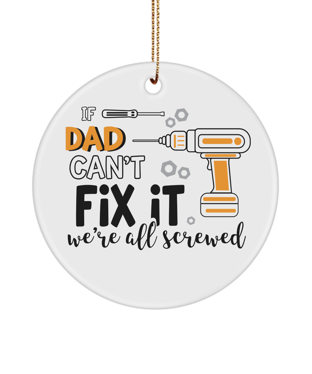 If Dad Cant Fix It Ornament, Funny Father’s Day Present, Gift For Best Dad, Dad Gift Ideas From Grandkids.PngWhite