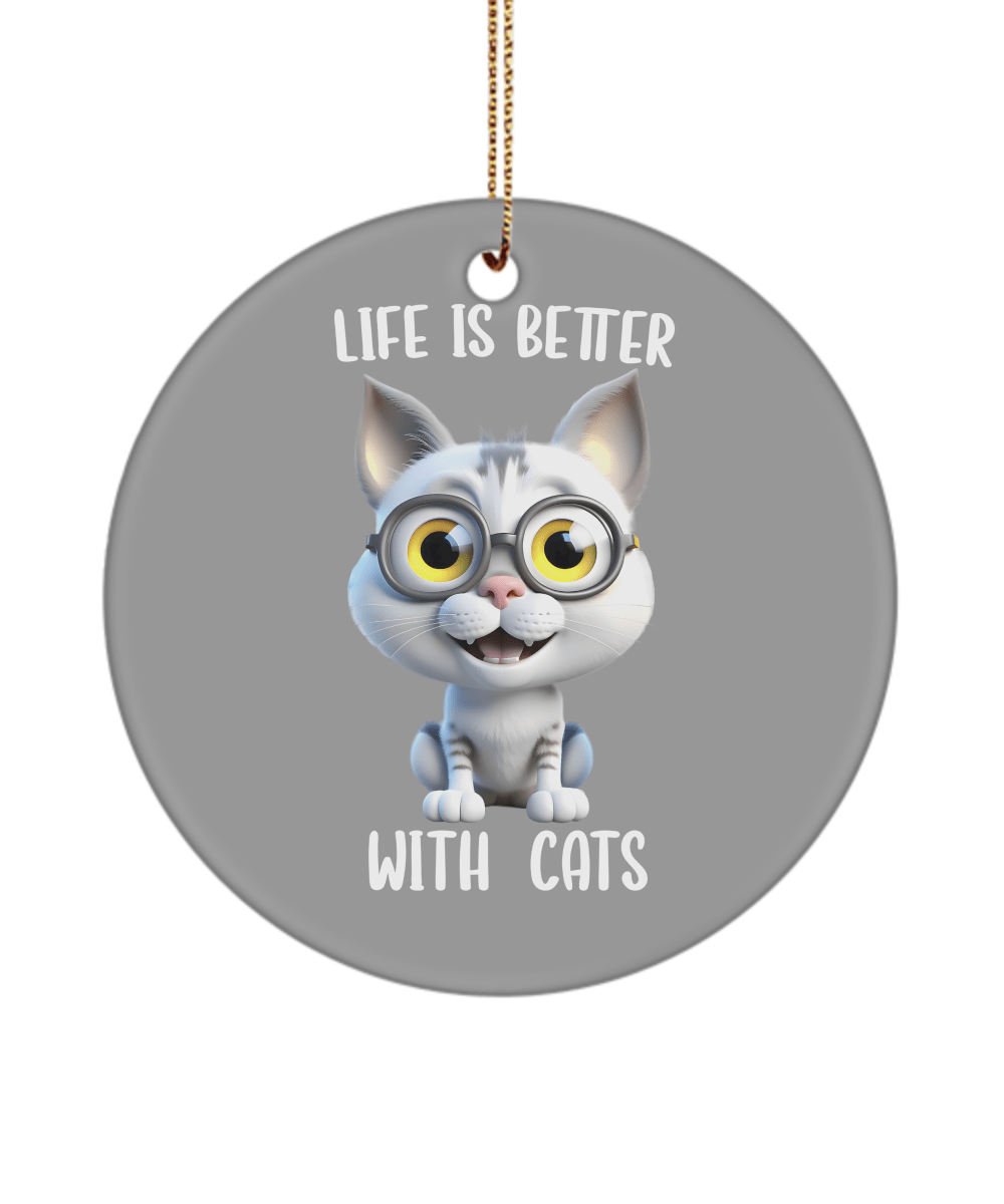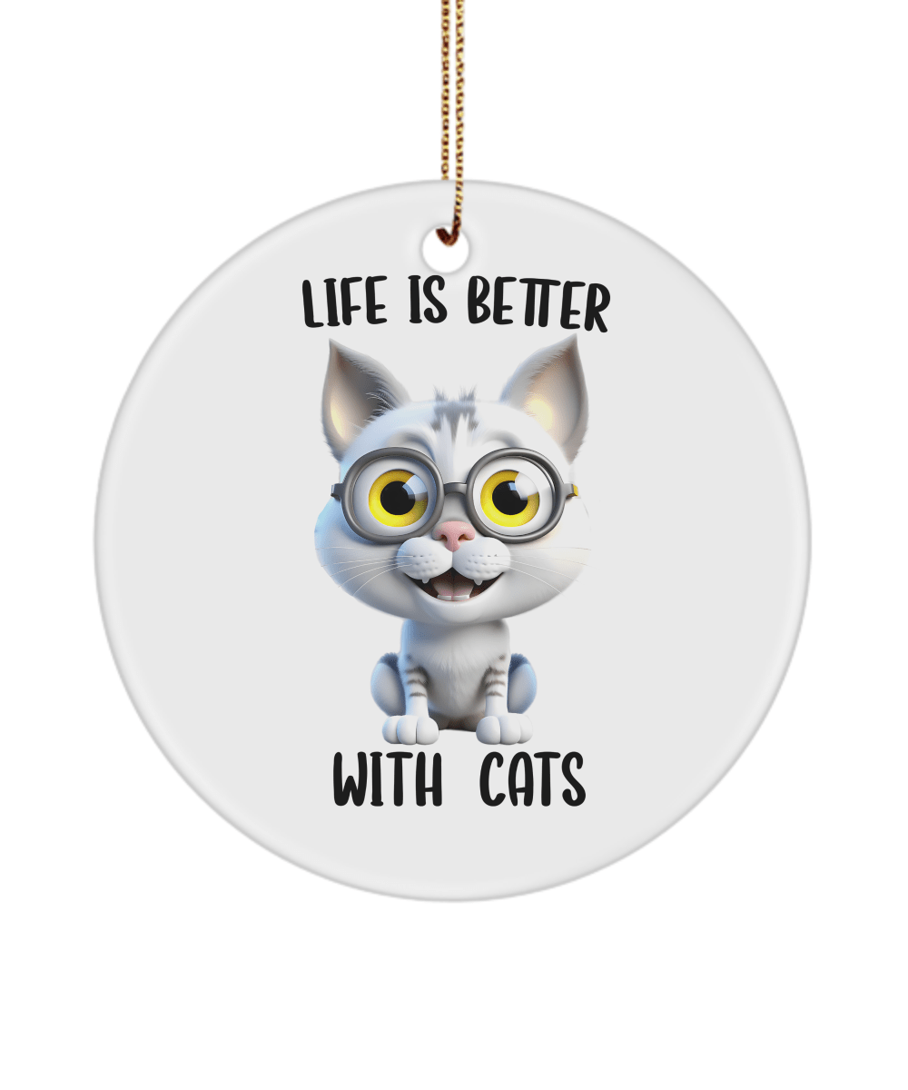 Ornament For Cat Lovers – Life Is Better With Cats – For Women – Birthday Gifts For Cat Mom Cat Dad White