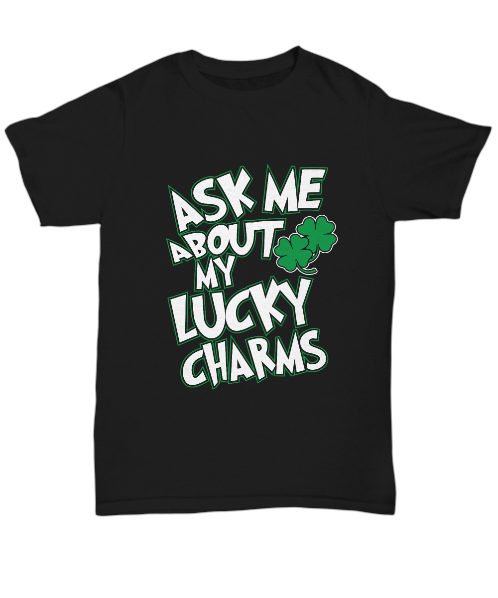 St Patricks Day Black Tshirt Ask Me About My Lucky Charms Tee Black Tshirt