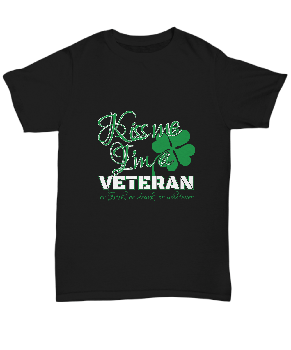 St Patricks Day Black Tshirt Kiss Me A Veteran Tee Black Tshirt