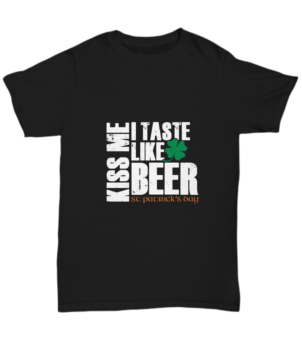 St Patricks Day Black Tshirt Kiss Me I Taste Like Beer Tee Black Tshirt