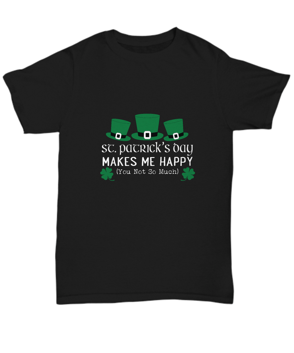 St Patricks Day Black Tshirt Makes Me Happy Tee Black Tshirt