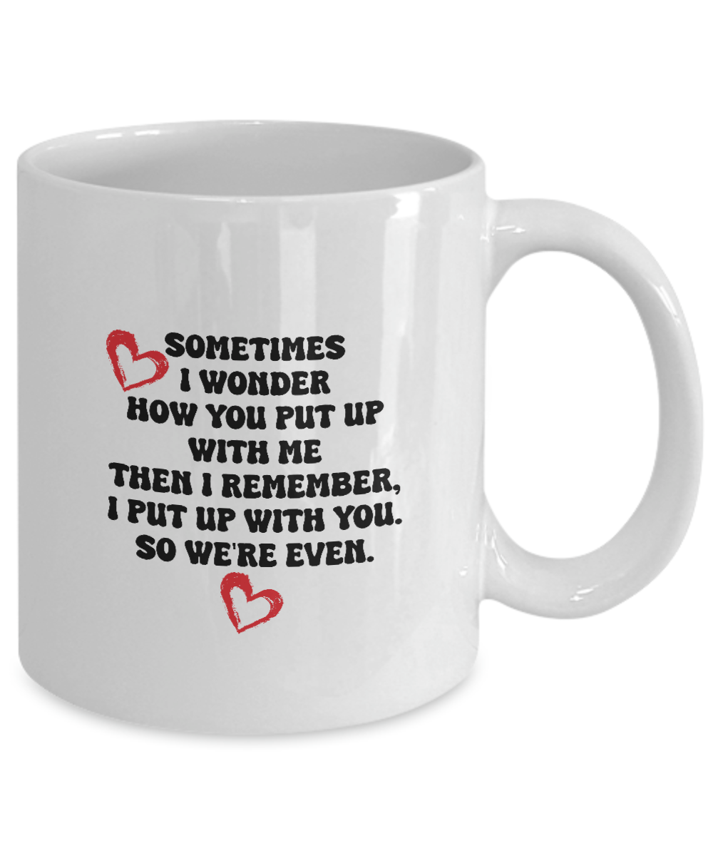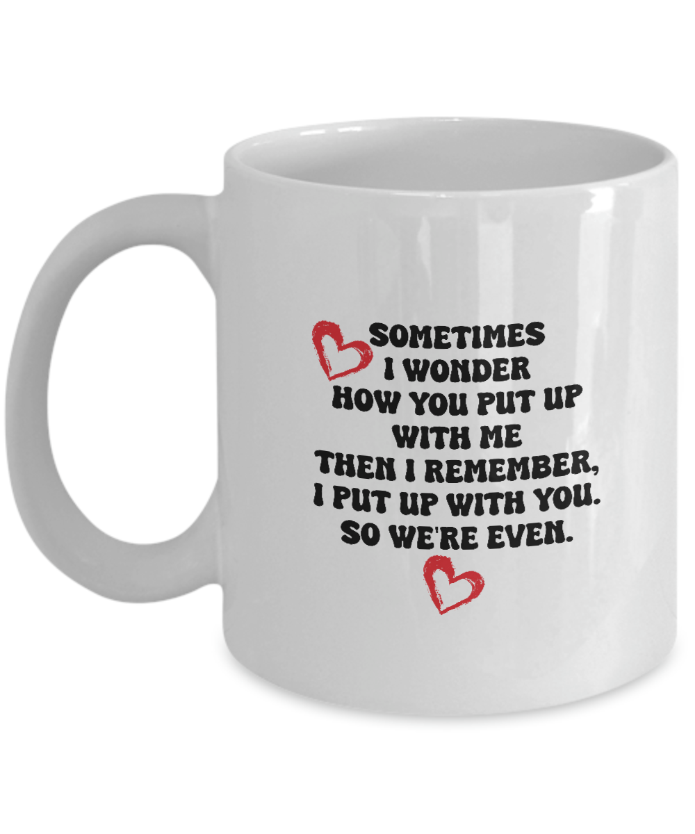 Valentines Day Mug Gifts For Him Or Her – Sometimes I Wonder Then I Remember We Are Even – Unique Gift