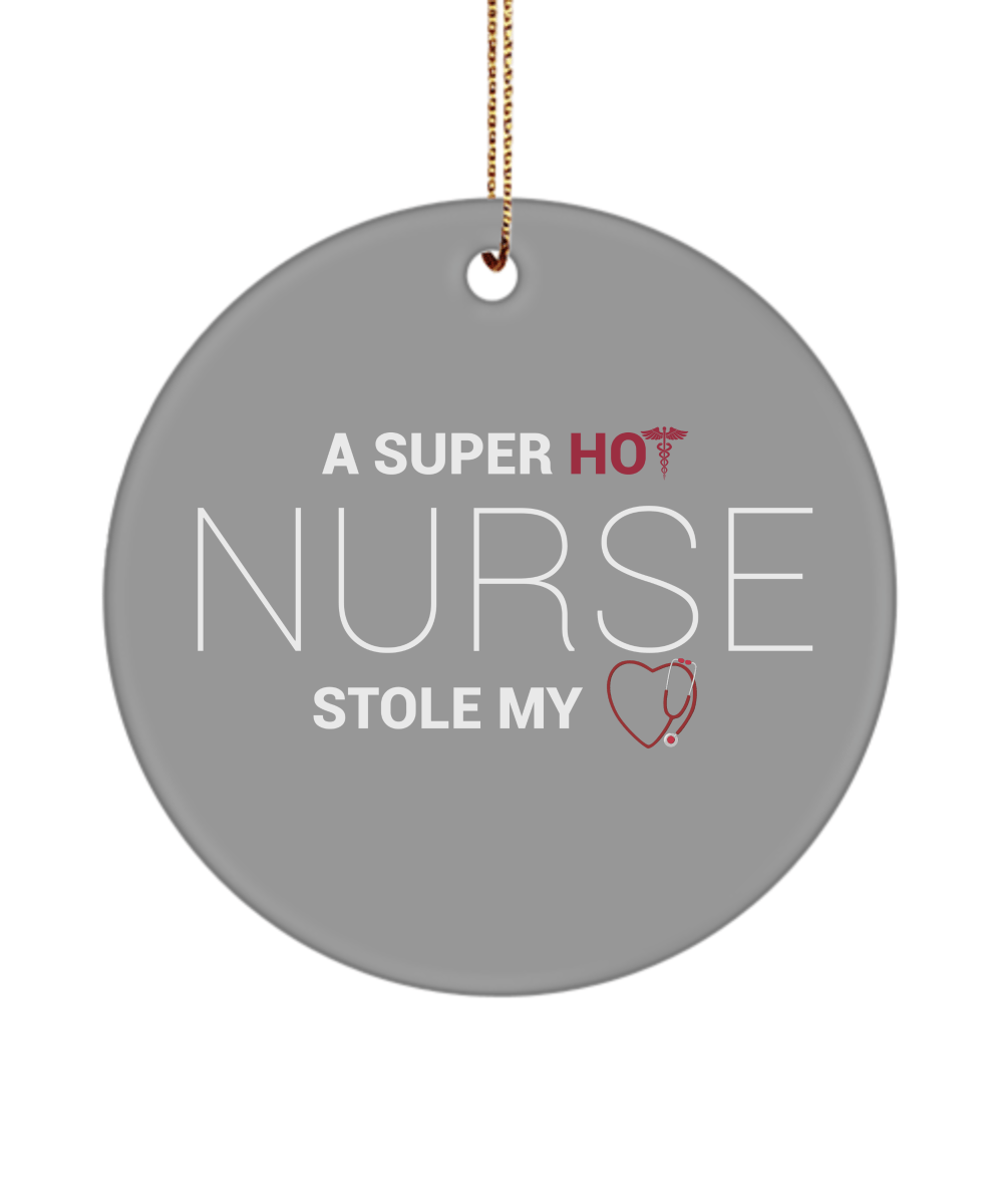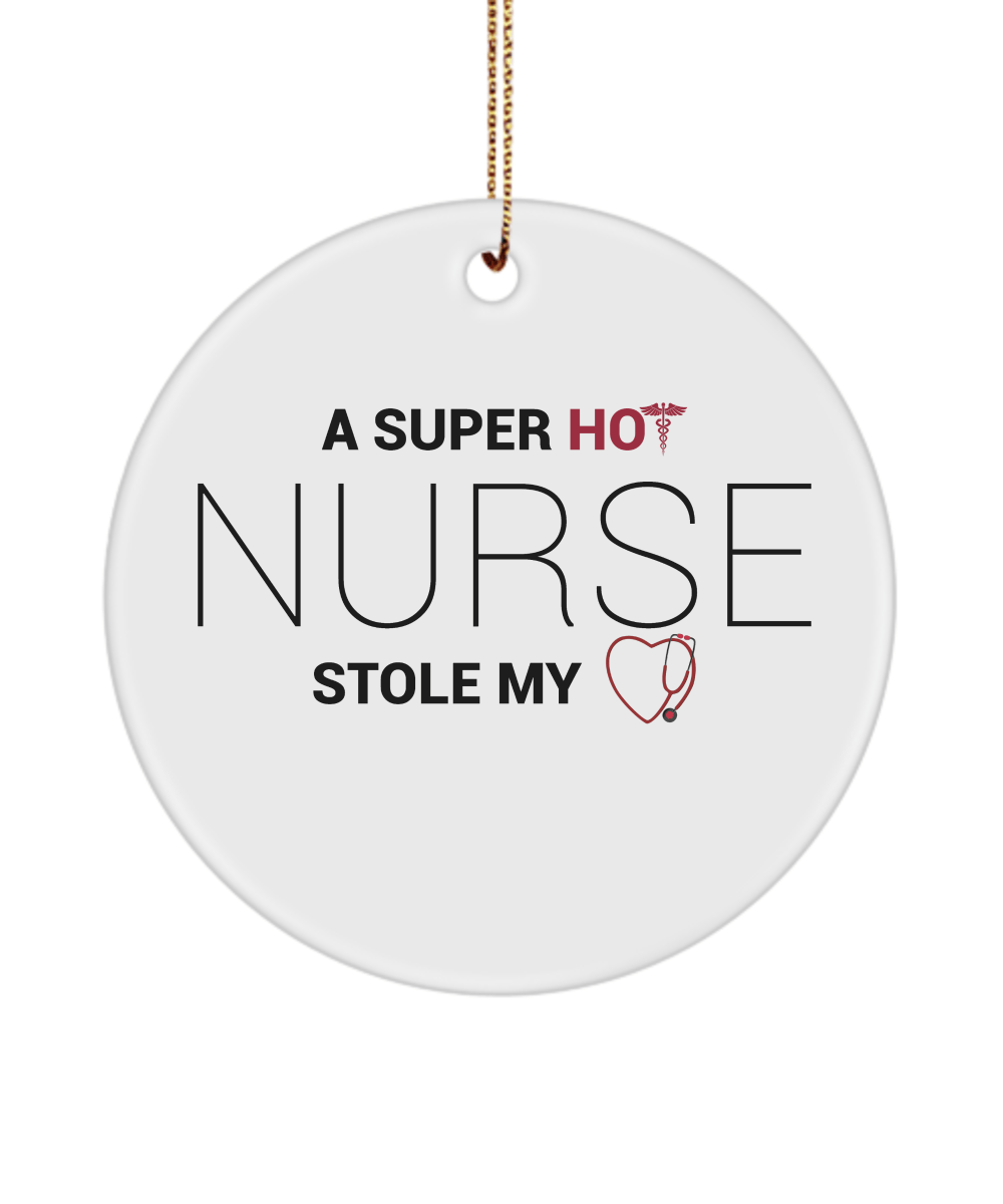Valentines Day Nurse Ornament Gifts For Him Or Her – Hot Nurse Stole My Heart – Unique Gift White